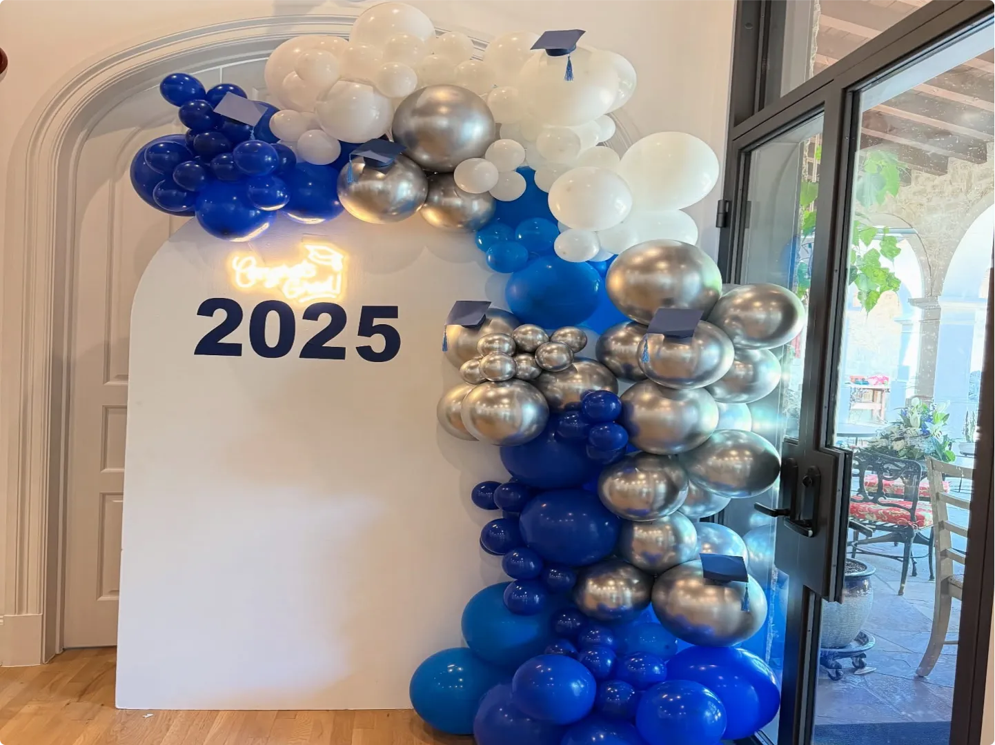 We work closely with you to create a garland that reflects your personality, interests, and academic success. We can also incorporate additional elements such as your initials, graduation year, or symbols representing your field of study or educational institution. Our personalized garlands become a focal point of your décor and can be placed at the entrance, behind the main table, on a wall, or anywhere you want to highlight—adding a unique and special touch to your celebration and serving as a beautiful backdrop for photos and memories.