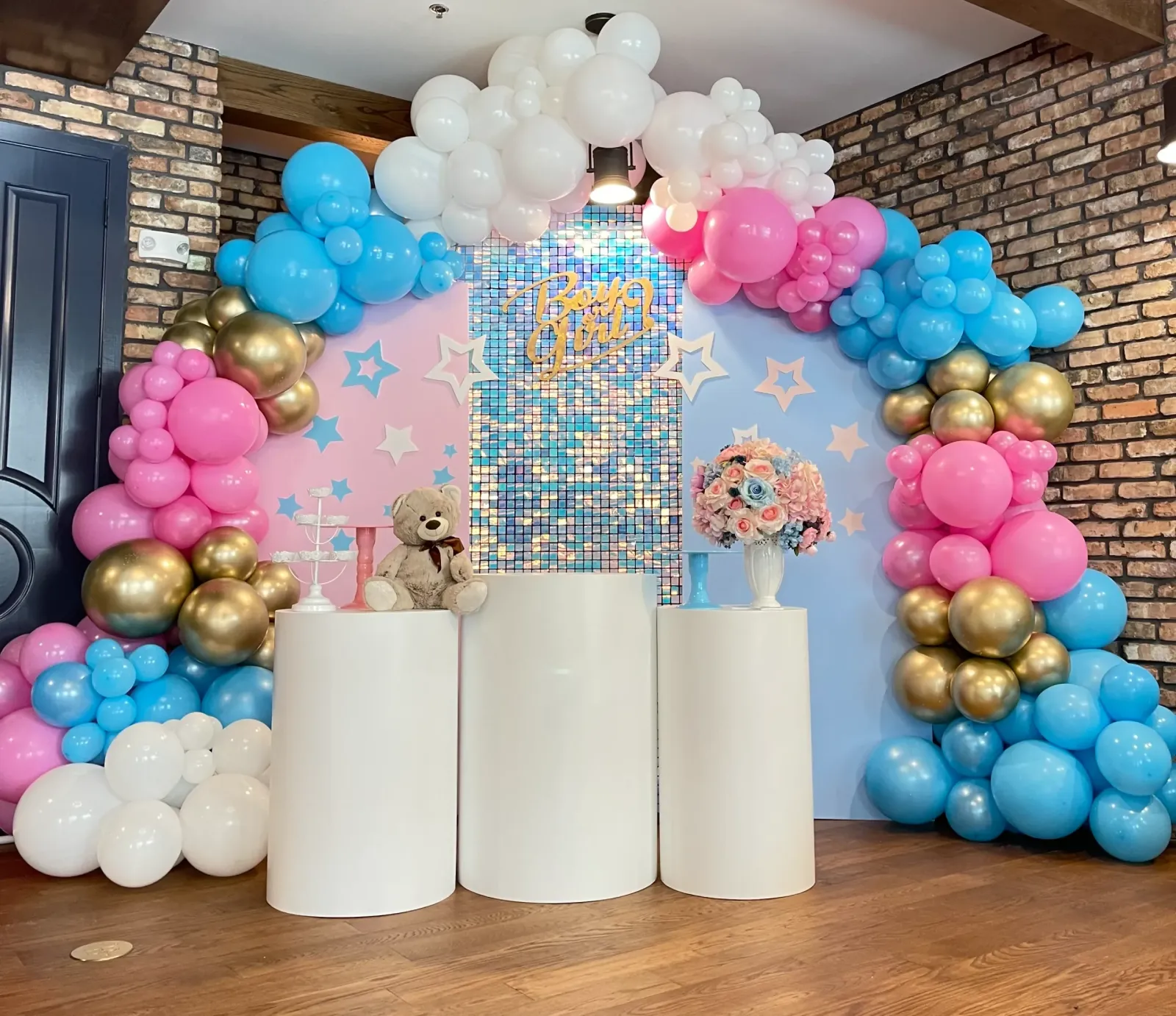 The average cost of gender reveal balloon decoration can vary depending on size, length, complexity, design, and the quality of materials. Several factors influence the final price. At MV Fiestas, we offer different types of quotes and will provide one based on your specific requirements.